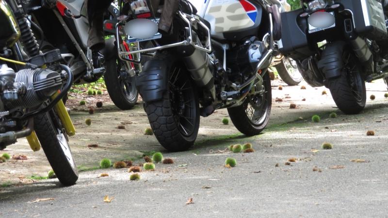 ▲ランチ前、南阿蘇村某所にて。落下したイガグリ三昧(笑)▲