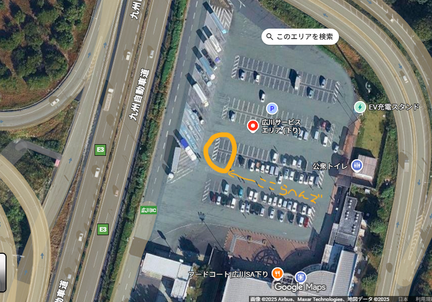 ▲広川SA集合場所 ⚠駐車場リニューアル前画像、Googleマップ抜粋▲