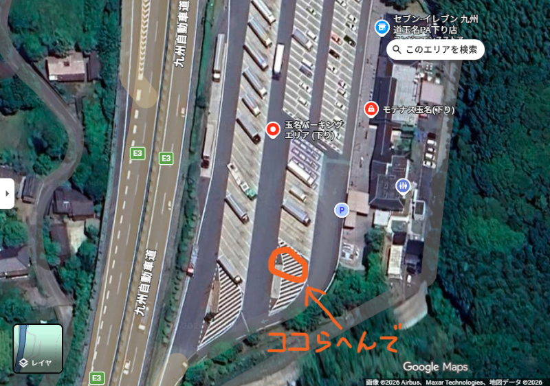 ▲集合場所、玉名PA下り。Googleマップ抜粋▲