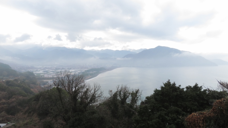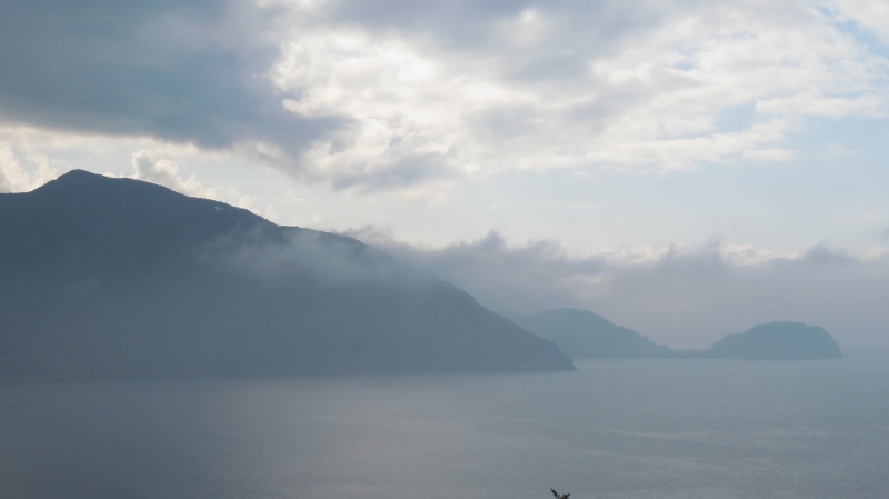 橘湾もご覧の通り、霧が所々で立ち込め、そしてこの先のルート方向はすっぽり雲の中(汗)