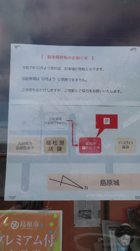 あっ、島原城入口真ん前が姫松屋さんの新しいPになります。